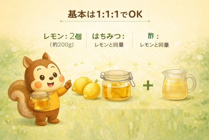 はちみつ:レモンと同量