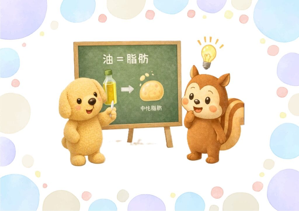 油の入り口は違っても、体の中では同じ「脂肪の形」で扱われます(/o\)
